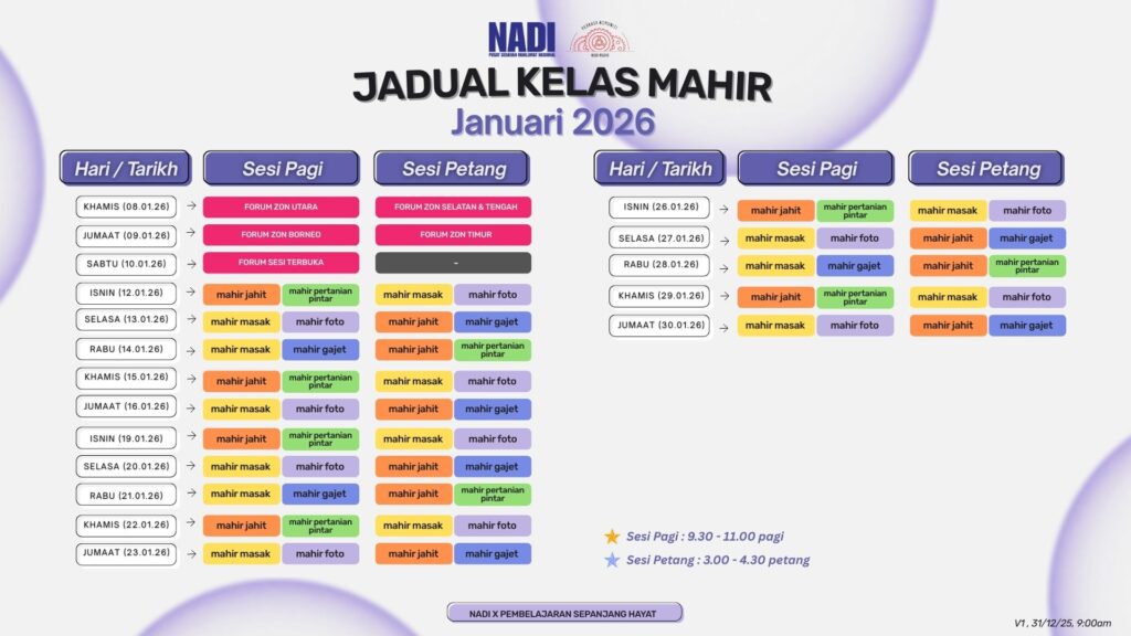 JADUAL KELAS MAHIR JANUARI 2026